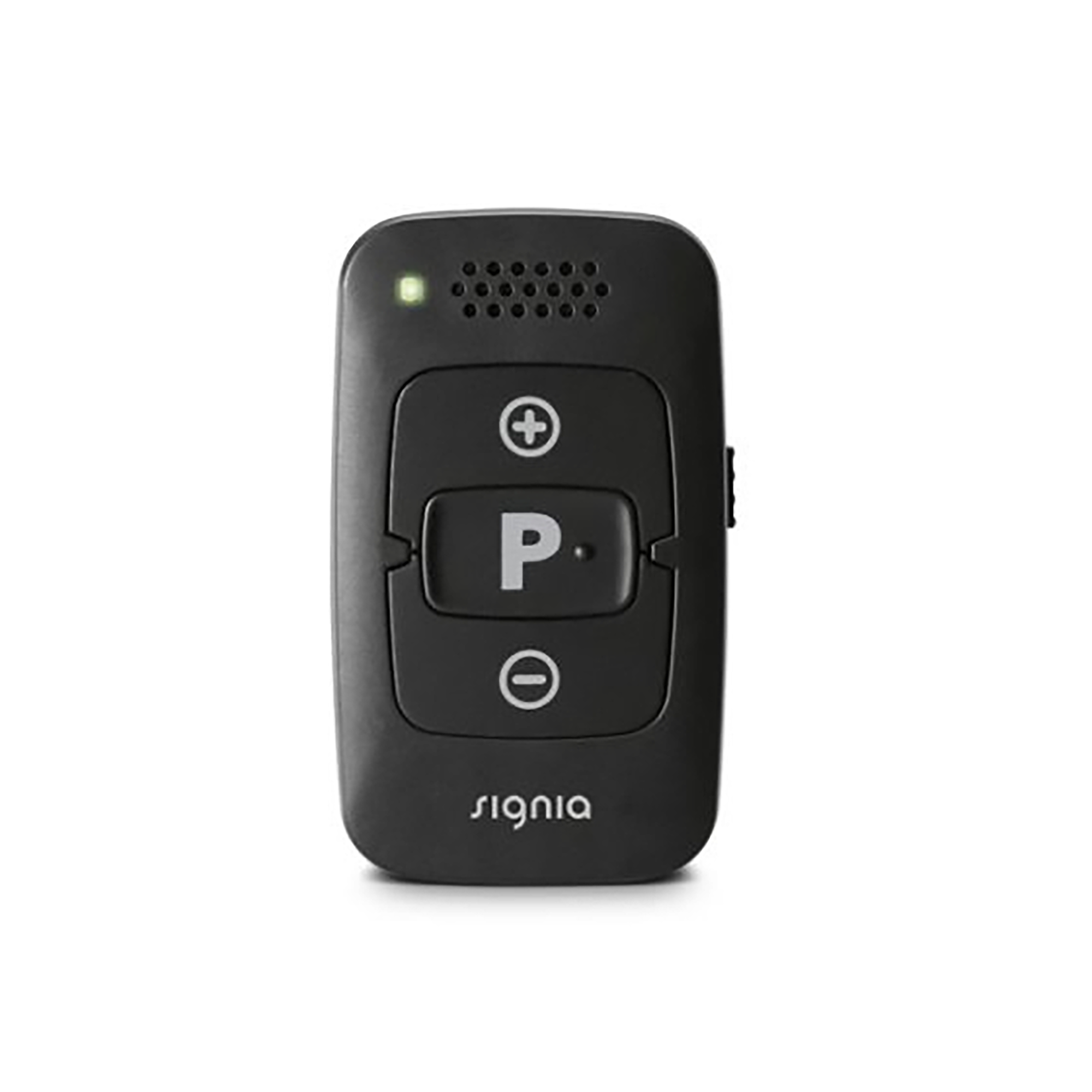 The Signia miniPocket remote control is made for compatible BCT IX, IX, X, AX, PX, or BX family Signia hearing aids. Uses a CR2450 battery.